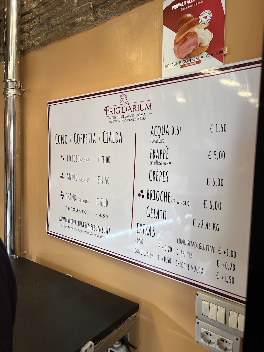 The menu at Frigidarium offers a straightforward yet inviting selection centered around expertly crafted gelato and complementary treats. It feels like a casual, refreshing stop perfect for those seeking a delightful chill during a stroll through Rome’s historic neighborhood.